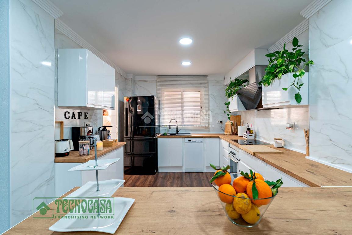 La cocina principal es espaciosa y práctica, ideal para compartir momentos en familia. Pero uno de los grandes valores añadidos de esta vivienda es su amplia cochera con cocina, un espacio multifuncional perfecto para celebraciones, reuniones con amigos, comidas familiares o como zona adicional de ocio y almacenaje. Un auténtico plus que marca la diferencia.